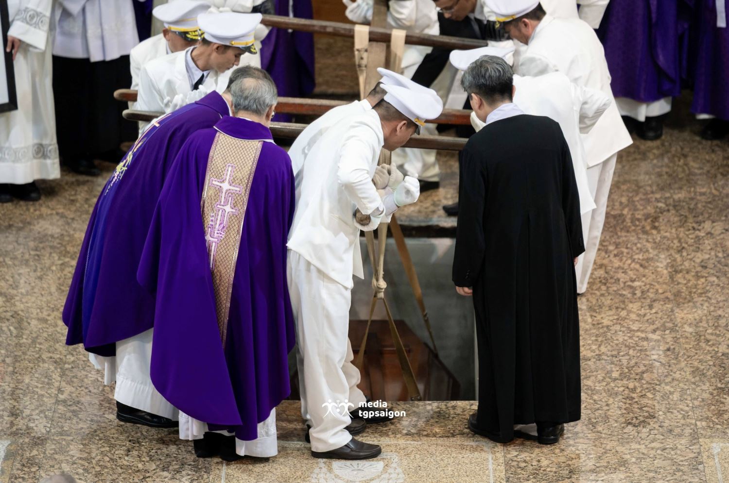 Sau đó, Đức cha Tổng Thư ký HĐGM Giuse Đỗ Mạnh Hùng đã chủ sự nghi thức Từ biệt, nghi thức Di quan vào Nhà Nguyện cổ, cùng với nghi thức Làm phép huyệt và Hạ huyệt tại cung thánh của Nhà Nguyện cổ.
