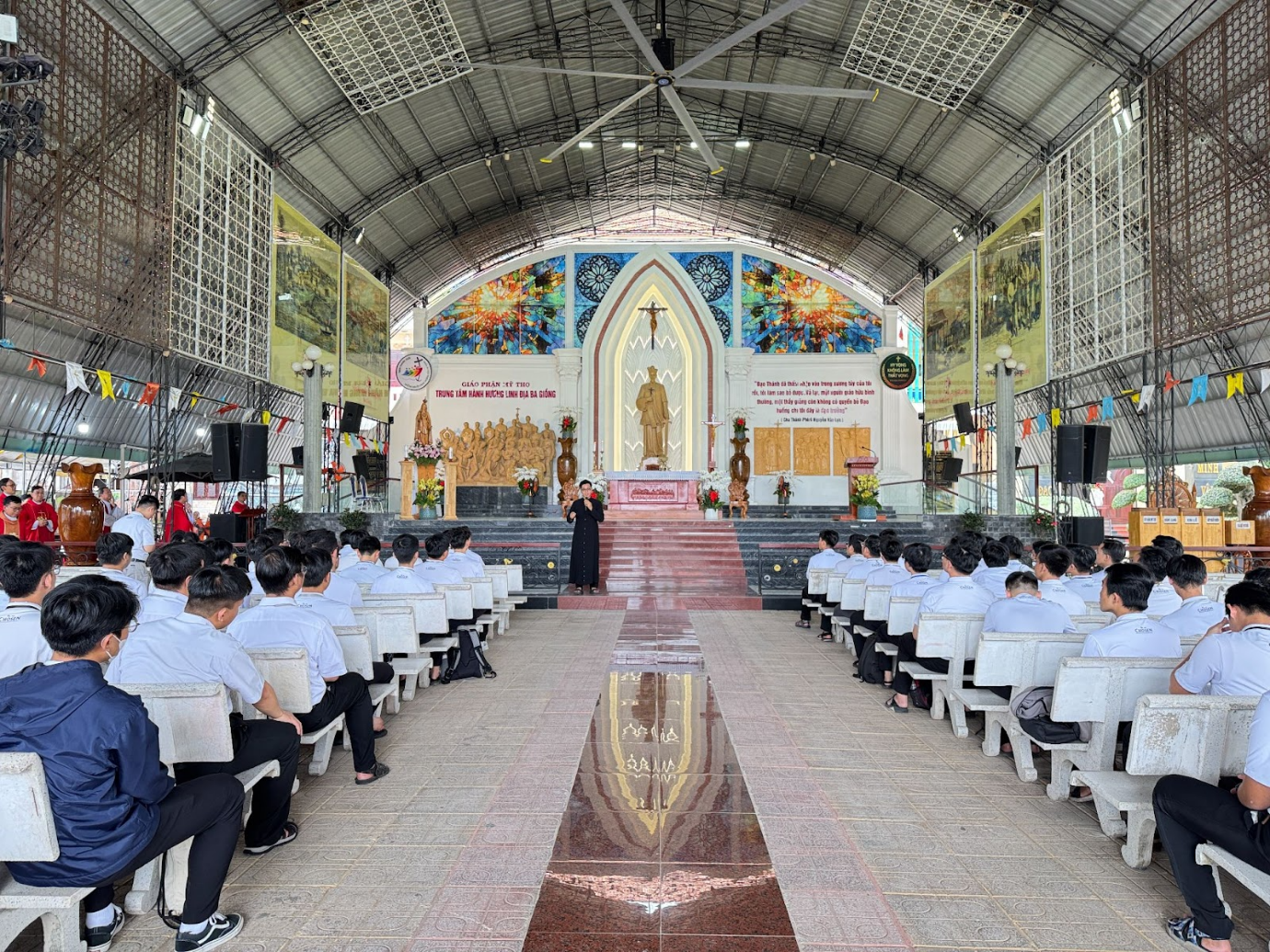 Đỉnh cao của chuyến hành hương là Thánh lễ do Cha Giuse Maria Lê Quốc Thăng chủ sự. Đồng tế với ngài có Cha Giuse Trần Hoàng Quân, Giám đốc Nhà Ứng sinh Chủng viện, Cha Giám đốc Nhà Dự bị cùng quý Cha đồng hành. Thánh lễ được cử hành với bầu khí trang nghiêm, sốt sắng.