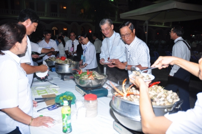 Đức cha Phêrô Nguyễn Văn Khảm: “Ngày hôm nay mỗi nhóm đúc kết, dự kiến hết 1g 30 phút, nhưng không ngờ lại nhanh hơn mấy ngày trước. Đức cha Nha Trang nhiều lần chưa kịp lắc chuông người báo cáo đã nói xong rồi. Người vui nhất là Đức cha Tôma Hiệu, vì không ai được quà trừ ngài...”