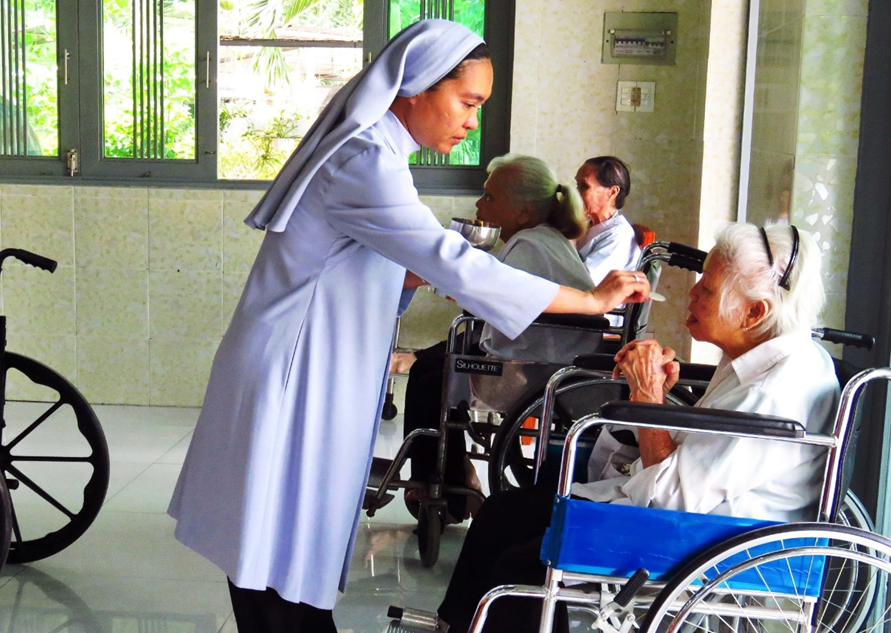Được biết, Nhà Bác ái Nhân Nghĩa hiện có 12 nữ tu đang chăm sóc 45 cụ bà, độ tuổi từ trên 50 đến hơn 90. Trong đó, khoảng hai phần ba các cụ đang trong tình trạng nằm liệt giường. Khi đoàn đến thăm, có một cụ đang hấp hối được cha đến xức dầu, sau đó sức khỏe dần hồi tỉnh.
