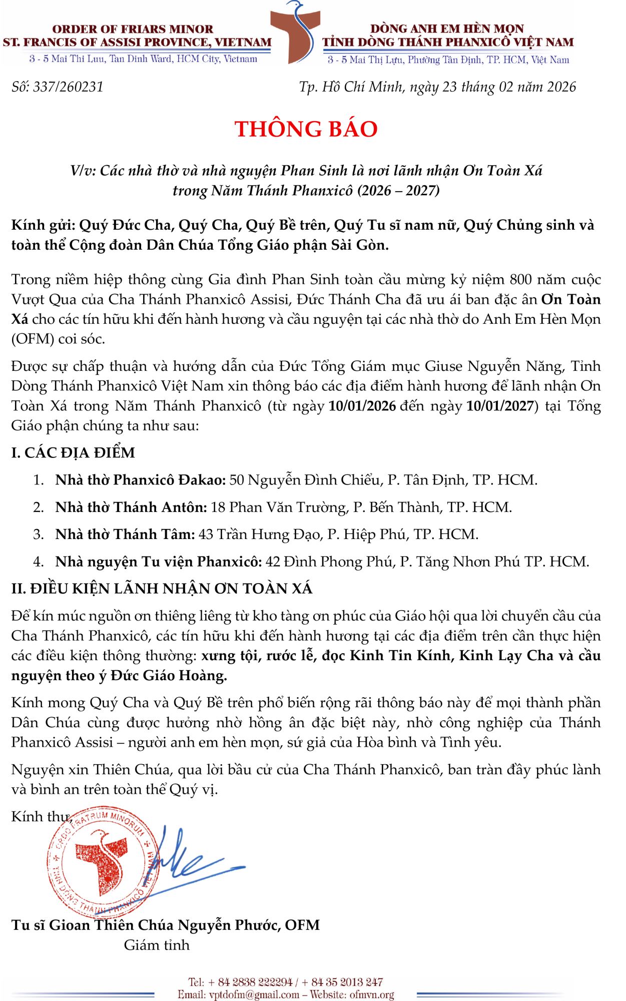 Nơi lãnh nhận ơn toàn xá trong Năm Thánh Phanxicô