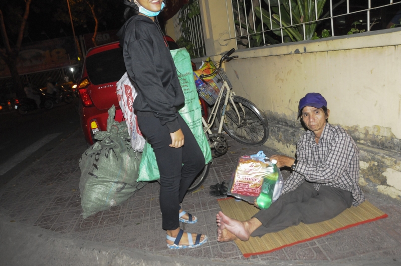Trên đường Lý Thường Kiệt, anh chị Long đang thu nhặt ve chai bán để lấy tiền về quê. Anh chị cho biết: “Quê vợ chồng em ở Đồng Xoài, hai vợ chồng lên thành phố làm thợ hồ, cuối năm công ty hết việc nhưng đi xin việc làm nơi khác không được, nên phải rời nhà trọ vì không có tiền, và đi lượm ve chai bán để lấy tiền về quê”.
