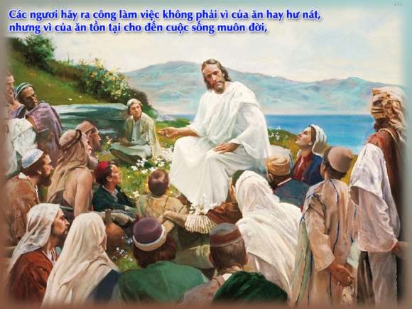 Hôm nay, Đức Kitô dạy ta: lương thực, cơm bánh ở trần gian cần thật, nhưng ngoài sự sống mỏng manh, chóng tàn ở thế giới trần gian này, còn có gì khác hơn nữa? Ngài dẫn lối cho chúng ta về đời sống vĩnh cửu:” Bánh sự sống chính là Ta ! Ai đến với Ta sẽ không hề đói, và kẻ tin vào Ta sẽ không hề khát bao giờ” ( Ga 6, 35 ).