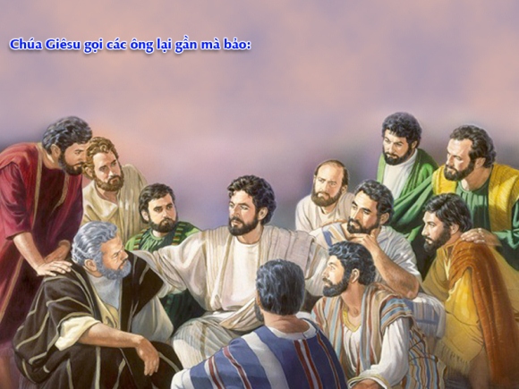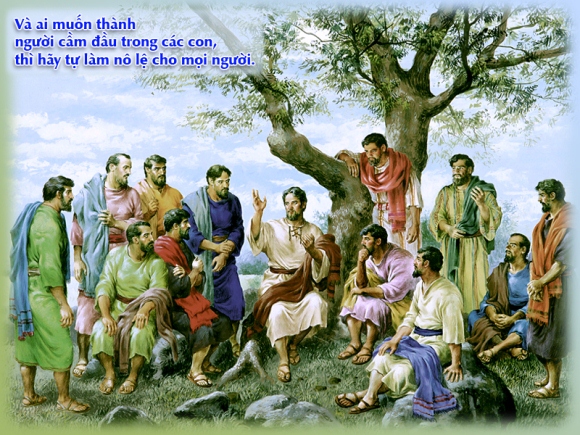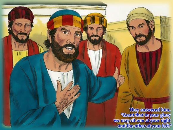Chúa Giêsu luôn nêu gương cho các môn đệ bài học khiêm tốn, bài học phục vụ và tuân phục ý Chúa Cha. Nhân việc hai môn đệ Giacôbê và Gioan muốn có chỗ danh dự trong vương quốc của Chúa, Chúa Giêsu đã dạy các môn đệ và nhân loại về cách thức làm lớn theo cái nhìn mới của Ngài. Con đường làm lớn, theo Chúa Giêsu, là con đường phục vụ. Đây là cái nhìn hoàn toàn mới của Chúa Giêsu vì vào thời Chúa sống, những người làm lớn là những người thống trị, những người cầm đầu những người khác.Đối với Chúa Giêsu, người lớn nhất lại là người bé, là người phục vụ cho hết mọi người. Chính Chúa Giêsu khi được Chúa Cha sai tới trần gian đã không đòi quyền thống trị, cầm đầu cầm cổ người khác mà đến để hầu hạ, đến để phục vụ. Theo cái nhìn của Chúa Giêsu thì điều duy nhất phải có, phải hành động là qui tụ mọi người, giới thiệu Nước Trời, đem ơn cứu độ và xây dựng cộng đoàn huynh đệ, bác ái.Các môn đệ Chúa không thể đi con đường nào khác mà môn đệ phải sống như Chúa, phải làm như Chúa đã làm. Làm môn đệ có nghĩa là phục vụ. Giáo Hội do Chúa thiết lập cũng phải sống như Ngài và chỉ có một điều duy nhất: vương quyền Chúa hứa cho Giacôbê, Gioan và các môn đệ là hãy yêu thương như Ngài, uống chén đắng và hy sinh mạng sống (Ga 15, 13) vì anh em, vì nhân loại mình yêu mến như Chúa Giêsu đã thực hiện trong cuộc sống để cứu độ mọi người.