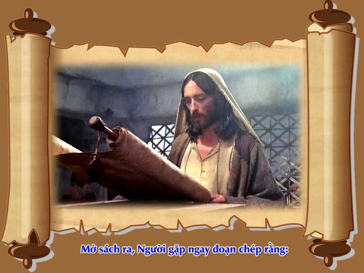 Người đứng dậy để đọc sách. Người ta trao cho Người sách tiên tri Isaia.
