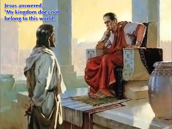 Theo ngôn ngữ của Thánh sử Gioan thì Nước Thiên Chúa không thuộc địa giới mà là Thiên giới, không thuộc xác thịt mà thuộc Thần khí. Chính vì thế, Chúa Giêsu không có gì để đối kháng với đế quốc Roma, hay sợ lấn quyền hành của Philatô hay của các vị lãnh đạo thế trần lúc đó.