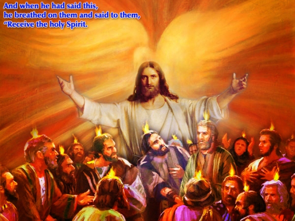 ”Chúa Thánh Thần đã xuống trên các Tông đồ và Hội thánh mới được thành lập”. Biến cố lễ Ngũ Tuần được Sách Công vụ tông đồ diễn tả bằng những lời văn sống động gần giống cách tường thuật việc Thiên Chúa ban Lề Luật cho dân Chúa trên núi Sinai. Với khí thế tưng bừng, náo nhiệt, ào ạt gió bão, Chúa Thánh Thần tràn ngập cộng đoàn Hội Thánh tiên khởi, gồm 11 môn đệ Chúa Giêsu, Mẹ Maria, một số phụ nữ đạo đức và 120 tông đồ (Cv 1, 15). Trong ngày lễ Ngũ Tuần, các môn đệ, tông đồ và những người hiện diện đều được tràn đầy Thần khí và đều cất tiếng ca ngợi những kỳ công Chúa đã làm, cao rao Lời Chúa hứa ban ơn cứu độ nay đã nên thành sự.