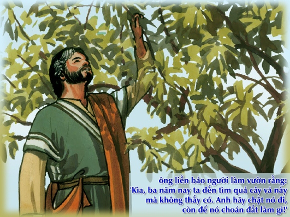 "Ba năm nay ta đến tìm quả cây vả này mà không thấy có. Vậy, Anh hãy chặt nó đi"