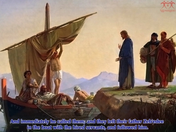 Từ xưa đến nay, ai đọc đoạn Tin Mừng này hẳn không khỏi ngạc nhiên tự hỏi động cơ nào khiến các môn đệ đầu tiên “lập tức” bỏ mọi sự để đi theo Chúa Giê-su. Phải chăng các ơng đã gặp Chúa trước đây rồi, và đây chỉ là giây phút quyết định? Vâng, đúng thế. Thế nhưng, chừng ấy chưa đủ cơ sở để các ông bỏ cha mẹ, bỏ lưới thuyền, “lập tức” ra đi theo tiếng gọi của Đấng “không có nơi gối đầu.” Hai tác giả V. Howard và D. Peabody giúp lý giải điều này: ơn gọi chính là Tin Mừng cho con người, Tin Mừng về Con Thiên Chúa cũng chính là Tin Mừng của toàn dân. Thế nên, việc các môn đệ mau mắn đi theo Chúa Giê-su vì họ nhận ra Ngài là Tin Mừng đích thật, có giá trị hơn mọi thứ các ông đang sở hữu.