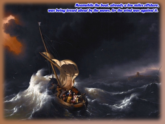 Nhìn lại chủ đề về Giáo Hội được khai triển trong những Chúa Nhật vừa qua, ta nhận thấy Phụng vụ Lời Chúa hôm nay chọn đoạn Tin Mừng kể lại câu chuyện Chúa Giê-su đi trên mặt nước chắc chắn phải mang một ý nghĩa hết sức đặc biệt. Phép lạ hóa bánh ra nhiều nói lên lòng yêu thương chăm sóc của vị Mục Tử nhân lành đối với đoàn chiên, muốn cho con chiên được nuôi dưỡng đầy đủ trong cuộc lữ hành trên dương gian. Chúa Giê-su Thánh Thể là lương thực thiêng liêng để ta được sống và sống dồi dào. Tuy nhiên, cũng trong hành trình ấy, ta cần phải có một lý tưởng, một đức tin hoặc một hướng đi chắc chắn giúp ta vững bước và trung kiên tới cùng. Vậy đâu là đối tượng duy nhất của đức tin ấy nếu không phải là chính Chúa Ki-tô. Hình ảnh Chúa Giê-su với bàn tay đưa ra cho ông Phê-rô bám lấy giữa cơn sóng gió trên Biển hồ luôn là hình ảnh không những của toàn thể Giáo Hội, mà cũng là hình ảnh của từng Ki-tô hữu nữa.