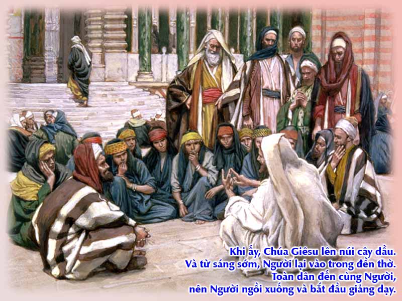 Bài Tin Mừng hôm nay trình bày một phiên toà. Bị cáo là người phụ nữ. Nguyên cáo là các Kinh sư và những người Pharisêu. Tội phạm là tội ngoại tình. Bản án là tử hình bằng cách ném đá. Thực ra họ không cần đến Chúa Giêsu làm quan toà. Họ có thể căn cứ vào luật Môsê để thi hành án. Họ đến hỏi ý kiến Chúa Giêsu không phải với thiện ý nhưng nhằm gài bẫy Người. Tha cho người phụ nữ là Người chống lại luật Môsê. Kết án người phụ nữ là Người mâu thuẫn với chính mình vì Người vẫn giảng dậy về lòng nhân từ thương xót. Cái bẫy thật hiểm độc. Đằng sau bản án của người phụ nữ chính là bản án dành cho Chúa Giêsu.
