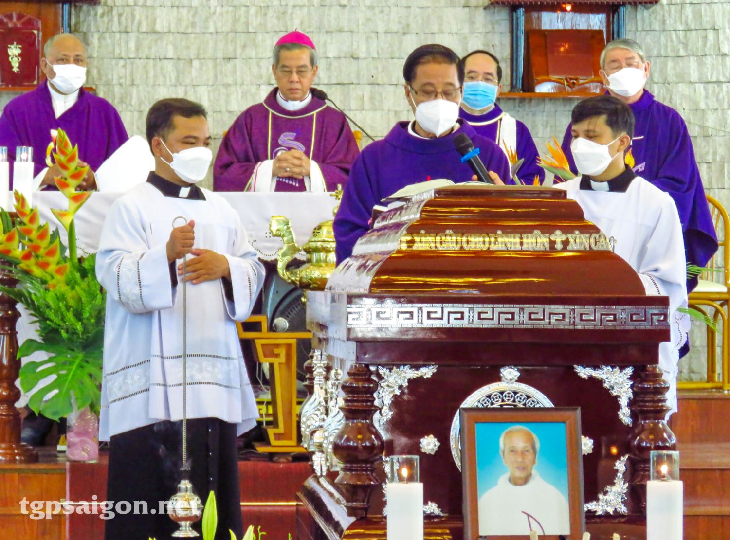 Trước khi kết thúc Thánh lễ, Lm Denis Phạm Bùi Vượng đã đại diện thân quyến cảm ơn Đức Tổng Giuse, các linh mục, các tu sĩ nam nữ, cùng toàn thể anh chị em tín hữu khắp nơi. Sau đó, Lm Tổng Phụ Trách Đaminh Vũ Kim Khanh đã cử hành nghi thức tiễn biệt cố Lm Giuse. Linh cữu cố Lm Giuse được trang trọng di chuyển ra khỏi nhà thờ để lên xe tang đi an táng tại nghĩa trang giáo xứ Bùi Môn, hạt Hóc Môn. Một số giáo dân đứng hai bên đường ngoài nhà thờ để tiễn biệt vị chủ chăn của mình, những người khác lên hai chiếc xe bus để đưa tiễn cố Lm Giuse đến tận nơi mai táng.