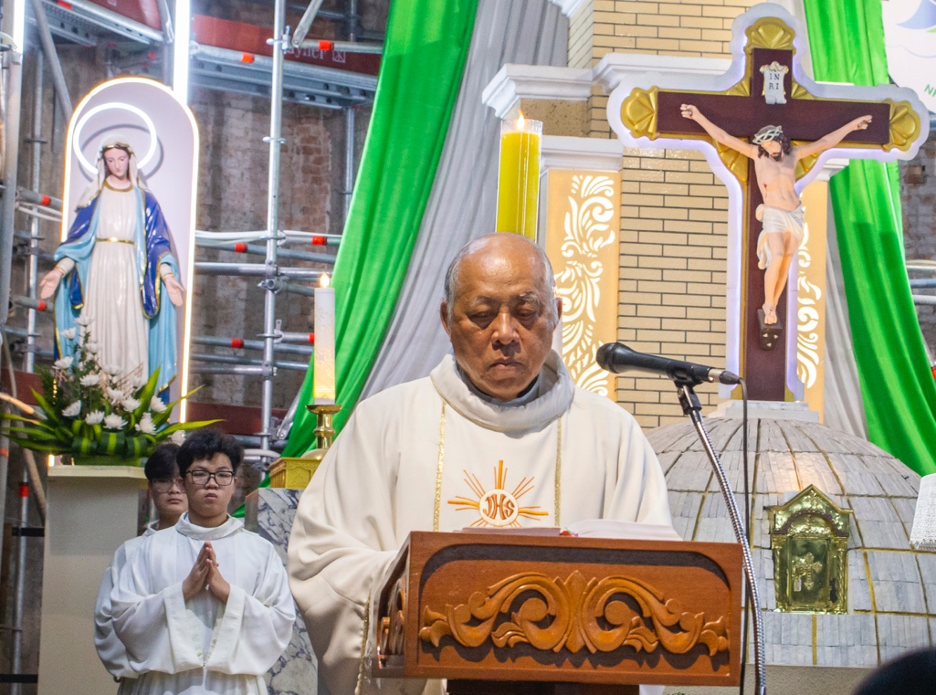Lm chủ tế mời gọi cộng đoàn và đặc biệt là các anh chị em chuẩn bị lãnh nhận các Bí Tích Khai Tâm noi gương Đức Maria luôn lắng nghe và thi hành lời Chúa trong đời sống hằng ngày.
