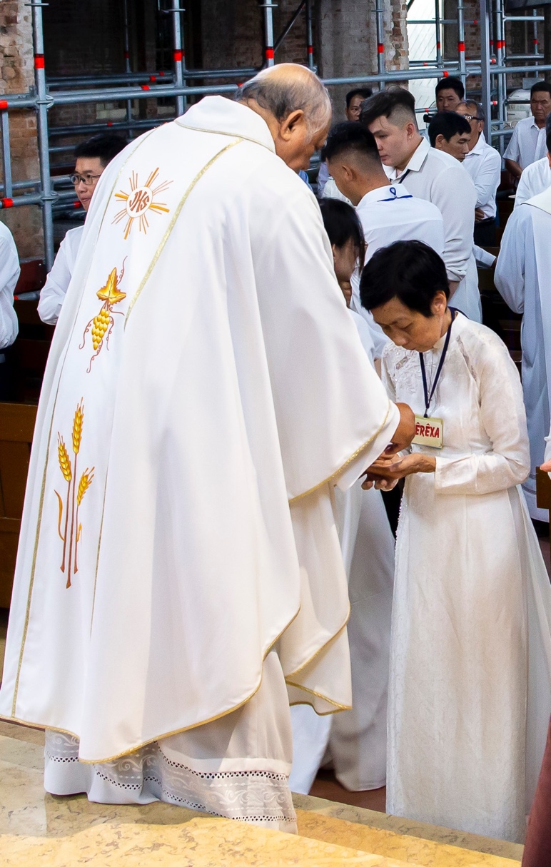 “Hôm nay là lễ mừng Đức Mẹ Dâng Mình trong đền thờ và là ngày giáo xứ Gia Định vui mừng đón nhận gần 20 anh chị em dâng mình cho Chúa để từ nay sẽ trở thành những tông đồ trên cánh đồng truyền giáo, sống chứng nhân loan báo Tin Mừng.”