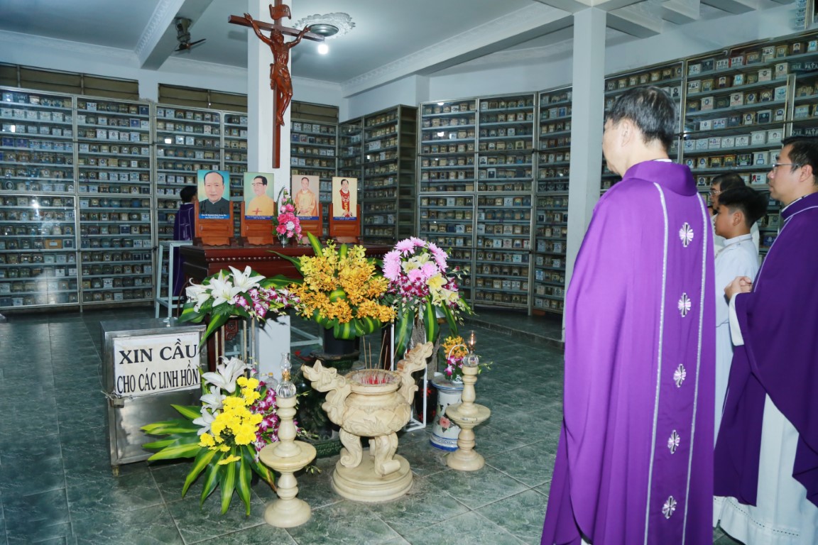 Sau khi ban phép lành, Lm chủ tế Giuse mời Cộng đoàn cùng xuống Nhà Hài Cốt của giáo xứ để cầu nguyện cho các linh hồn đang an nghỉ tại đây.