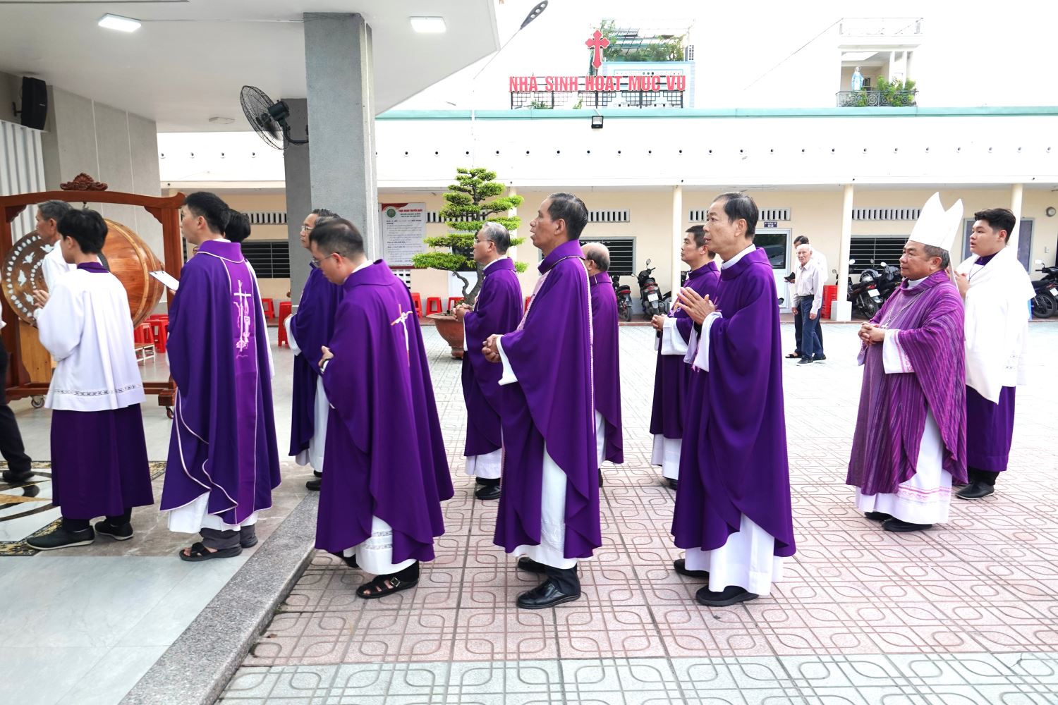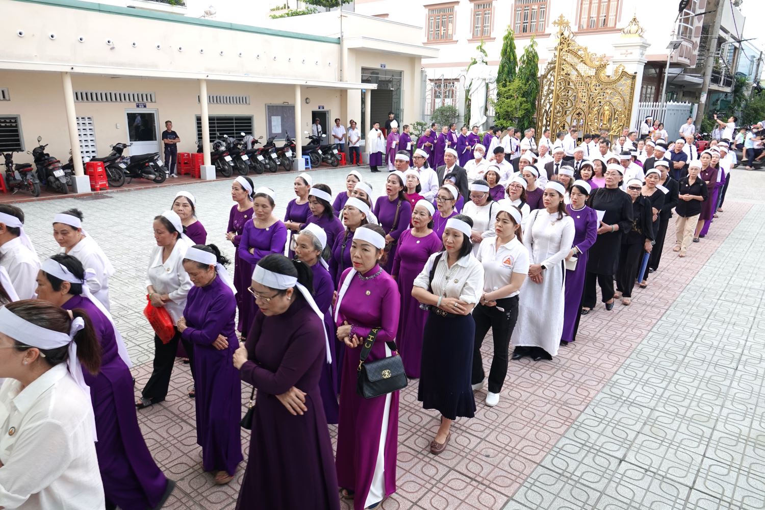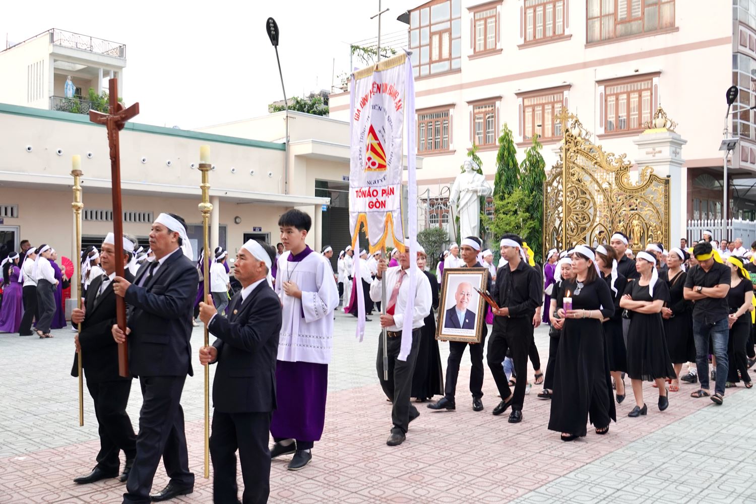 Trước giờ Thánh lễ, cộng đoàn đã cử hành nghi thức phát tang trong bầu khí trang nghiêm, xen lẫn niềm xúc động và tín thác vào lòng thương xót Chúa. Đoàn rước long trọng tiến vào nhà thờ với di ảnh Cha cố Phêrô và nghi thức thắp hương tưởng niệm. Làn khói hương bay lên như lời cầu nguyện thiết tha, diễn tả tấm lòng tri ân đối với vị mục tử đã hiến dâng trọn đời cho việc nâng đỡ và thăng tiến đời sống hôn nhân gia đình trong Hội Thánh.