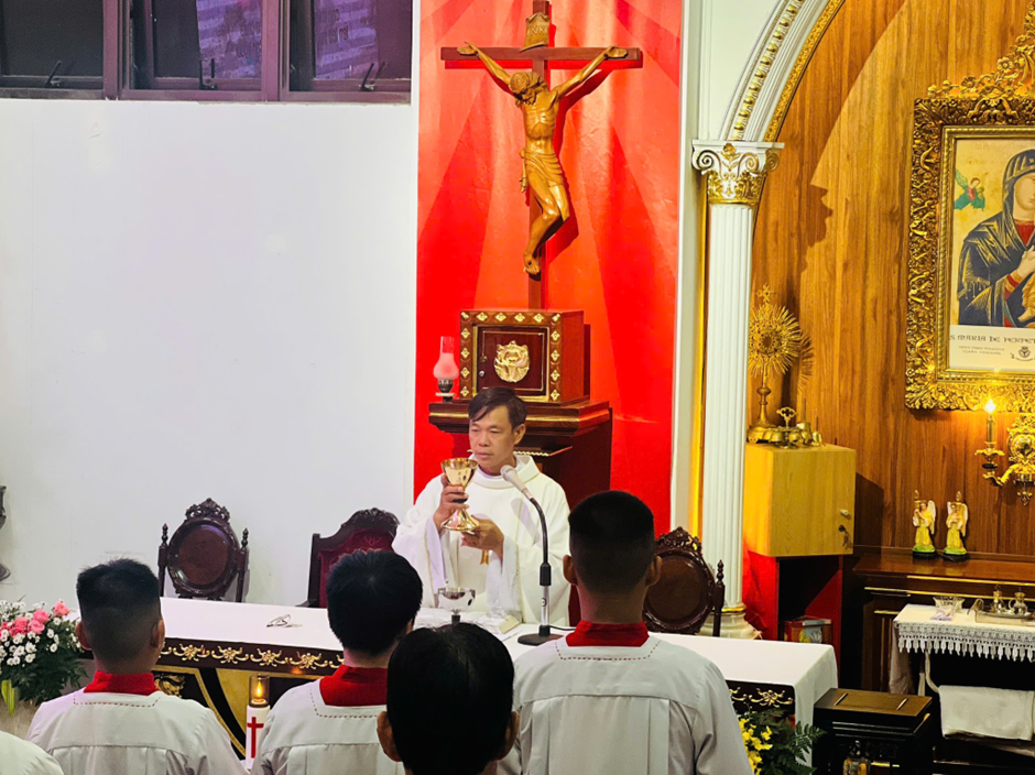 Cuối bài giảng, linh mục Giuse đã mời gọi cộng đoàn, cách riêng là các em Lễ sinh hôm nay mừng lễ bổn mạng, hãy giữ tâm hồn đơn sơ, chuyên chăm cầu nguyện, siêng năng phục vụ bàn thánh và luôn biết đặt Thiên Chúa lên hàng đầu trong cuộc sống.
