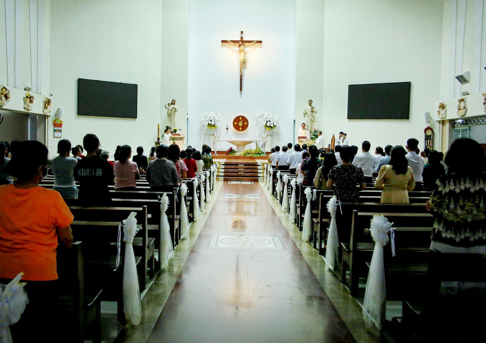 Tham dự Thánh lễ có các tu sĩ nam nữ, các thành viên cộng đoàn Kinh Thánh Cầu Nguyện, cùng giáo dân trong giáo xứ.