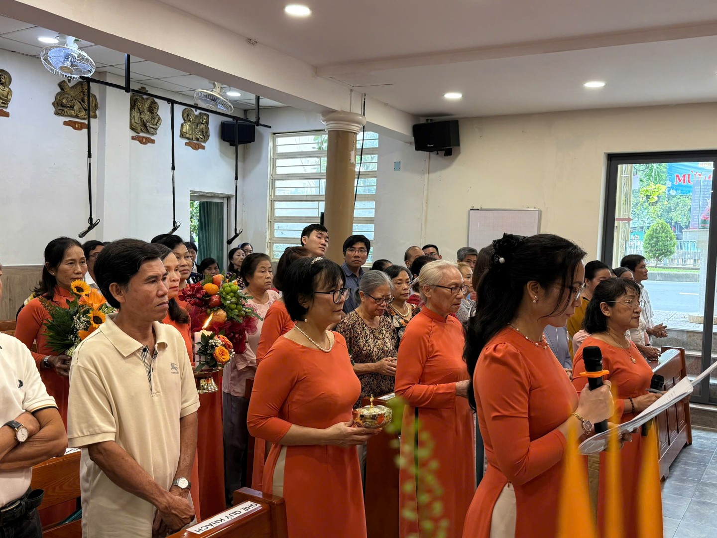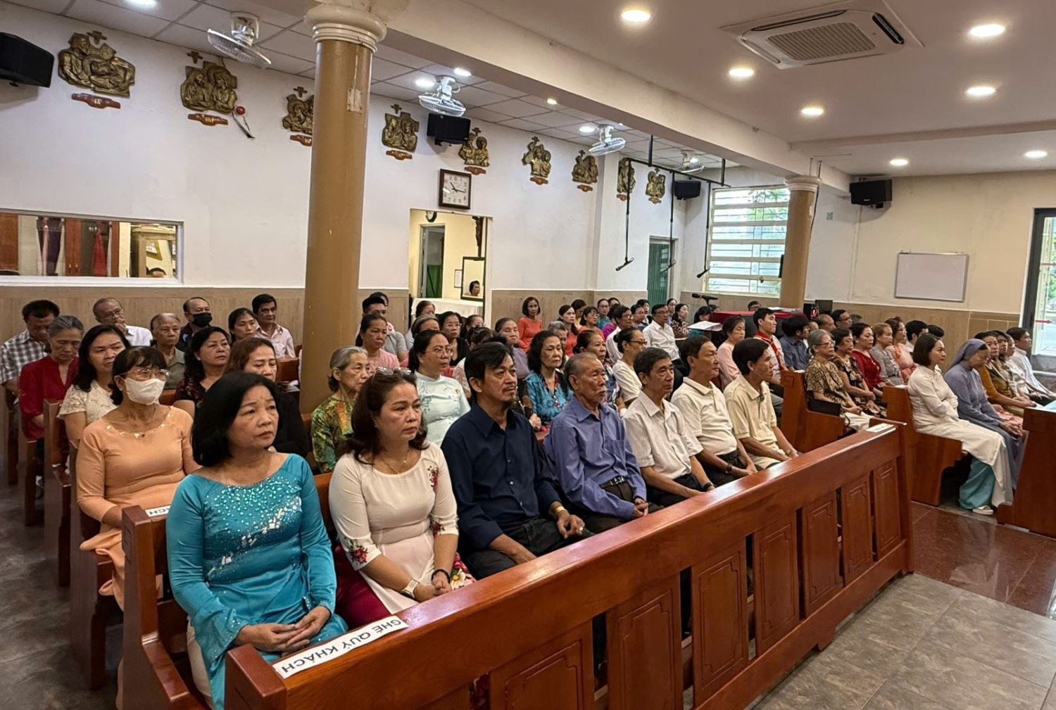 Giữa bầu trời trong xanh nắng đẹp, cộng đoàn dân Chúa giáo xứ Thánh Gia hân hoan tề tựu về nguyện đường giáo họ Fatima để dâng Thánh lễ, do Cha quản nhiệm Savio chủ tế. Đồng tế với ngài có Cha Phanxicô Xaviê Nguyễn Tiến Dưng - Bề trên Dòng Mẹ Lên Trời.