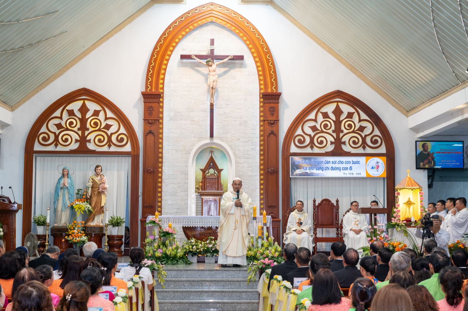 Đồng tế với Đức Viện phụ có các linh mục thuộc các dòng: Hội Thừa Sai Việt Nam, Ngôi Lời, Máu Châu Báu, Mẹ Chúa Cứu Chuộc, Tận Hiến, Thánh Tâm Huế, cùng các linh mục trong và ngoài Tổng Giáo phận. Hiện diện trong Thánh lễ còn có các tu sĩ nam nữ và đông đảo cộng đoàn dân Chúa trong và ngoài giáo xứ.