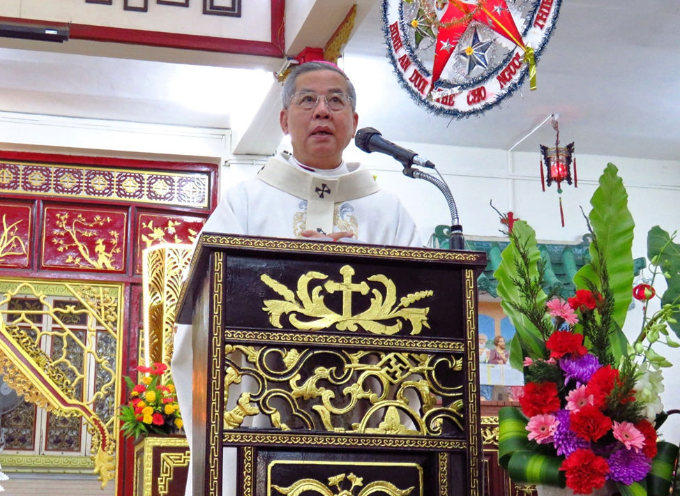 Đức Tổng Giám mục (TGM) Giuse Nguyễn Năng nhấn mạnh như trên khi đến thăm và chủ tế Thánh lễ mừng Chúa Giáng Sinh, cử hành lúc 18g00, ngày 25.12.2025, tại nhà thờ Đức Mẹ Hòa Bình.