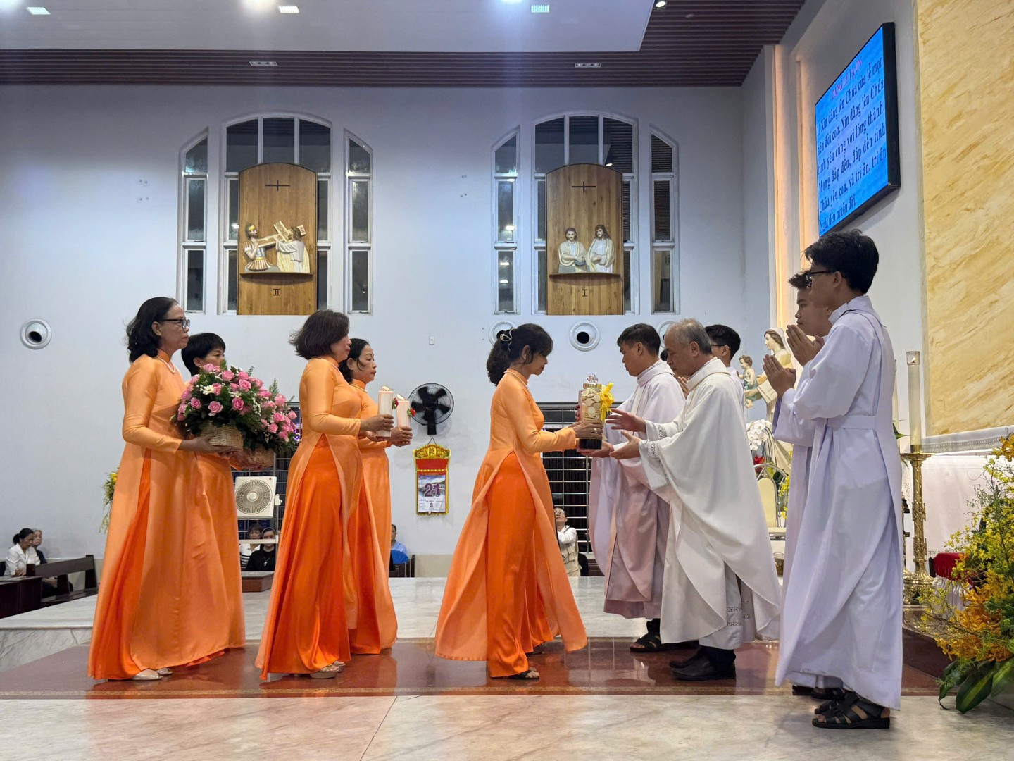 Thánh lễ do linh mục (Lm) chánh xứ Đaminh Vũ Ngọc Thủ chủ tế, đồng tế với ngài là Lm Phêrô Đỗ Khắc Minh Khoa (giảng lễ) và các linh mục thân quen.