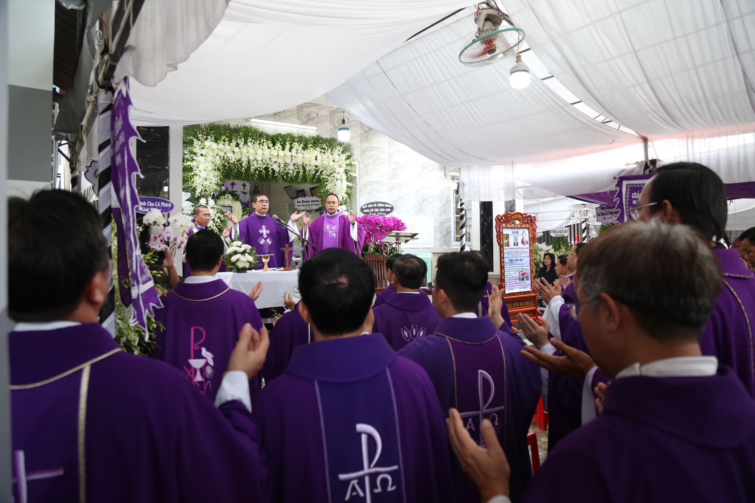 Sau phép lành cuối lễ của linh mục chủ tế, các linh mục đồng tế tiến lên thắp hương, rảy nước thánh và tiễn biệt ông cố Phaolô.