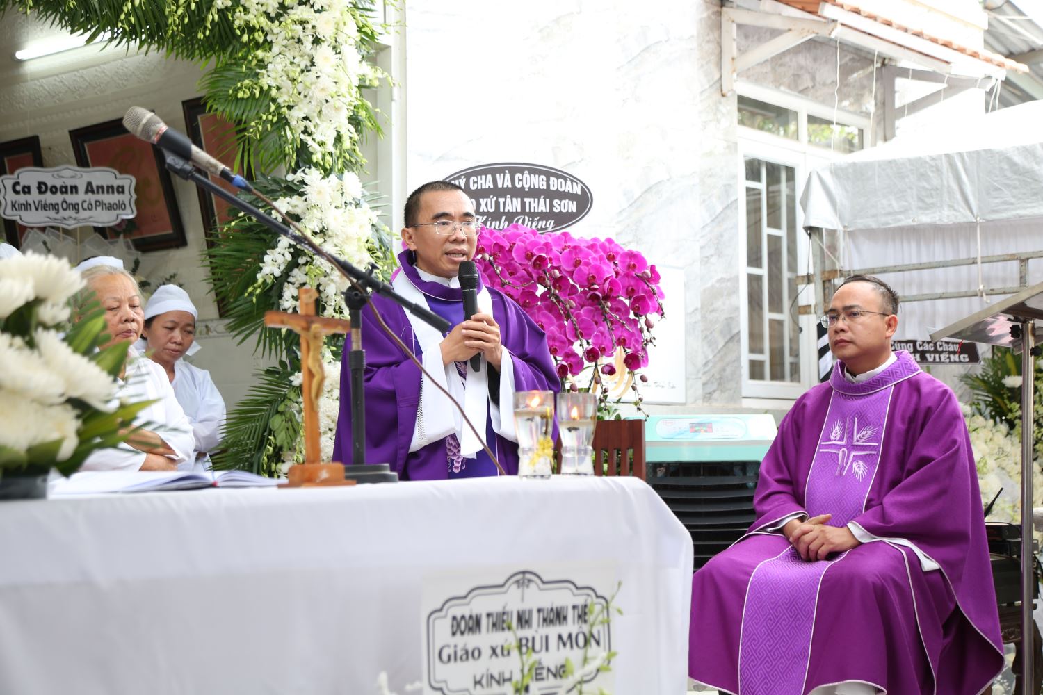 Sau lời nguyện hiệp lễ, linh mục Anrê Nguyễn Công Thái, đại diện tang quyến, dâng lời tri ân các linh mục và cộng đoàn. Ngài xúc động bày tỏ lòng biết ơn trước sự hiện diện đông đủ của các linh mục, dù bận rộn mục vụ và đường sá xa xôi. Ngài nhắc lại hình ảnh người cha luôn coi trọng Thánh lễ, luôn nhắc nhở con cái trung thành tham dự Thánh lễ mỗi ngày, chính nền tảng ấy đã gieo mầm ơn gọi trong gia đình. Ngài chân thành cảm ơn và xin cộng đoàn tiếp tục cầu nguyện cho ông cố Phaolô, đồng thời xin niệm tình tha thứ nếu gia đình có điều gì sơ suất trong việc tiếp đón.