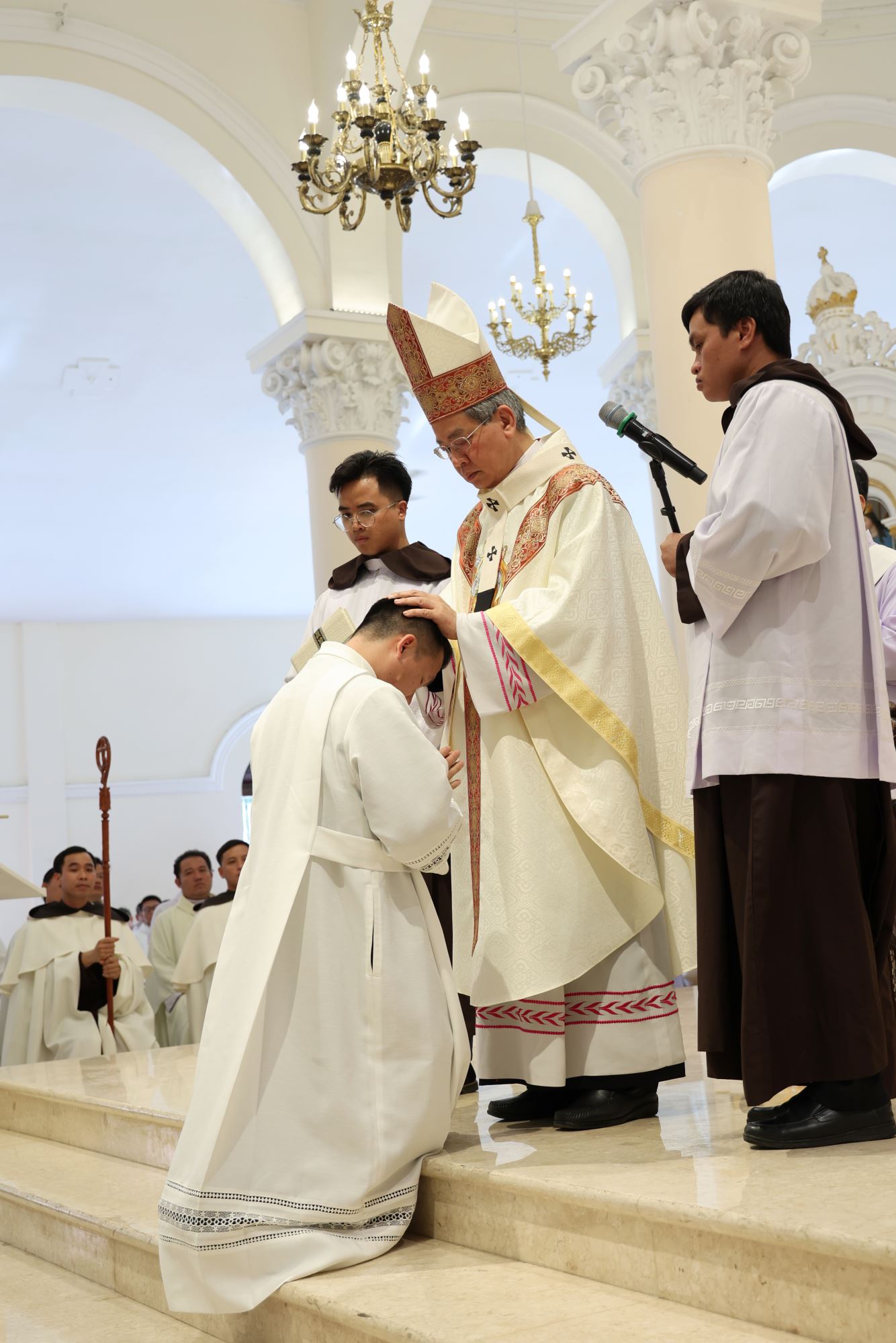 Đáp lại lời mời gọi ấy, quý thầy Giuse Nguyễn Văn Tâm - O.Carm, thầy Phêrô Phạm Trọng - O.Carm, thầy Giuse Bùi Xuân Long - O.Carm cũng đã can đảm và vinh dự bước theo Chúa Giêsu trên con đường phục vụ, để rồi lúc 08h30 ngày 17/02/2023, tại nhà thờ Tân Định, các thầy được cất nhắc lên hàng giáo sĩ qua việc lãnh nhận Thánh chức Phó tế và Linh mục, được cử hành bởi Đức Tổng Giám Mục (TGM) Giuse Nguyễn Năng.