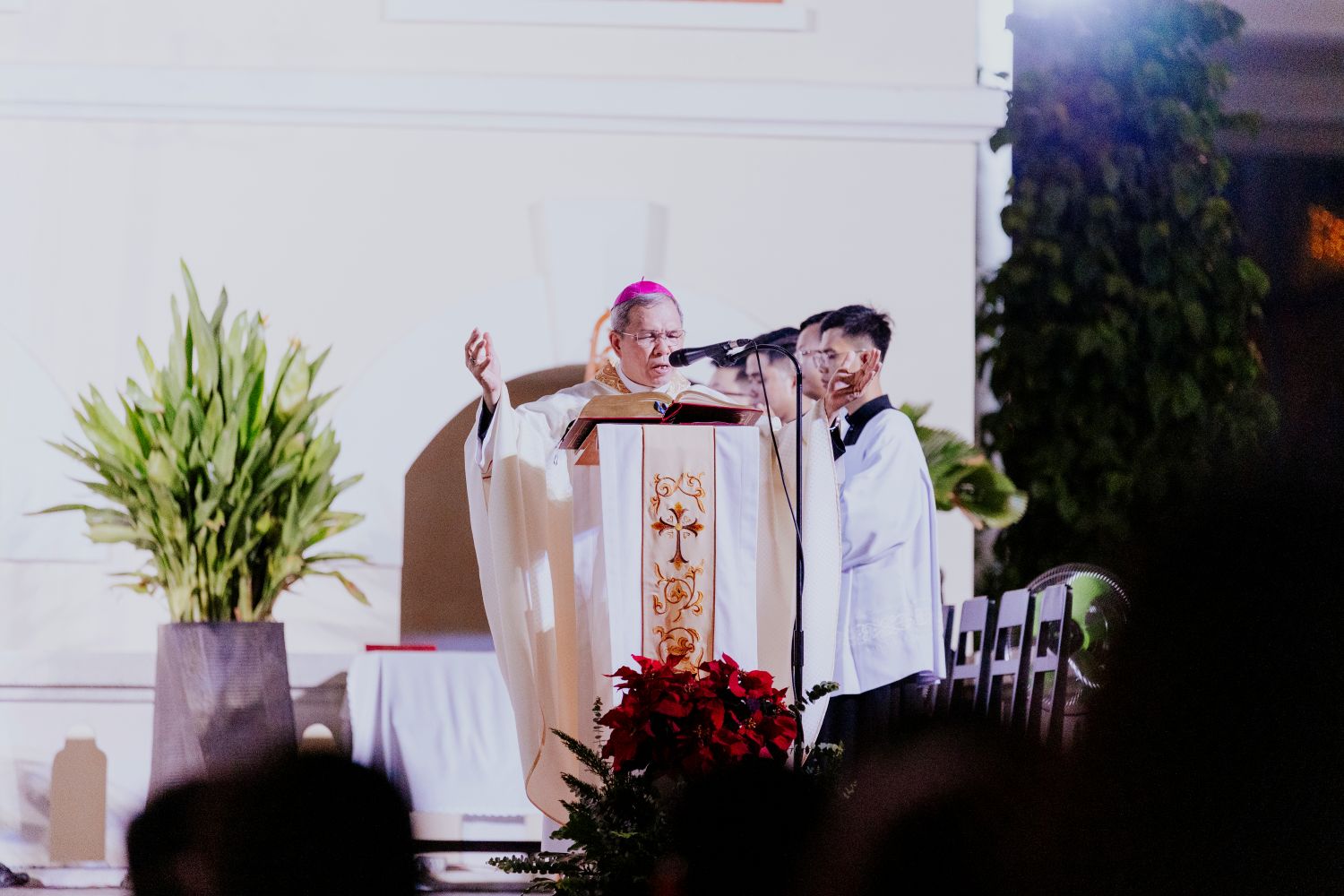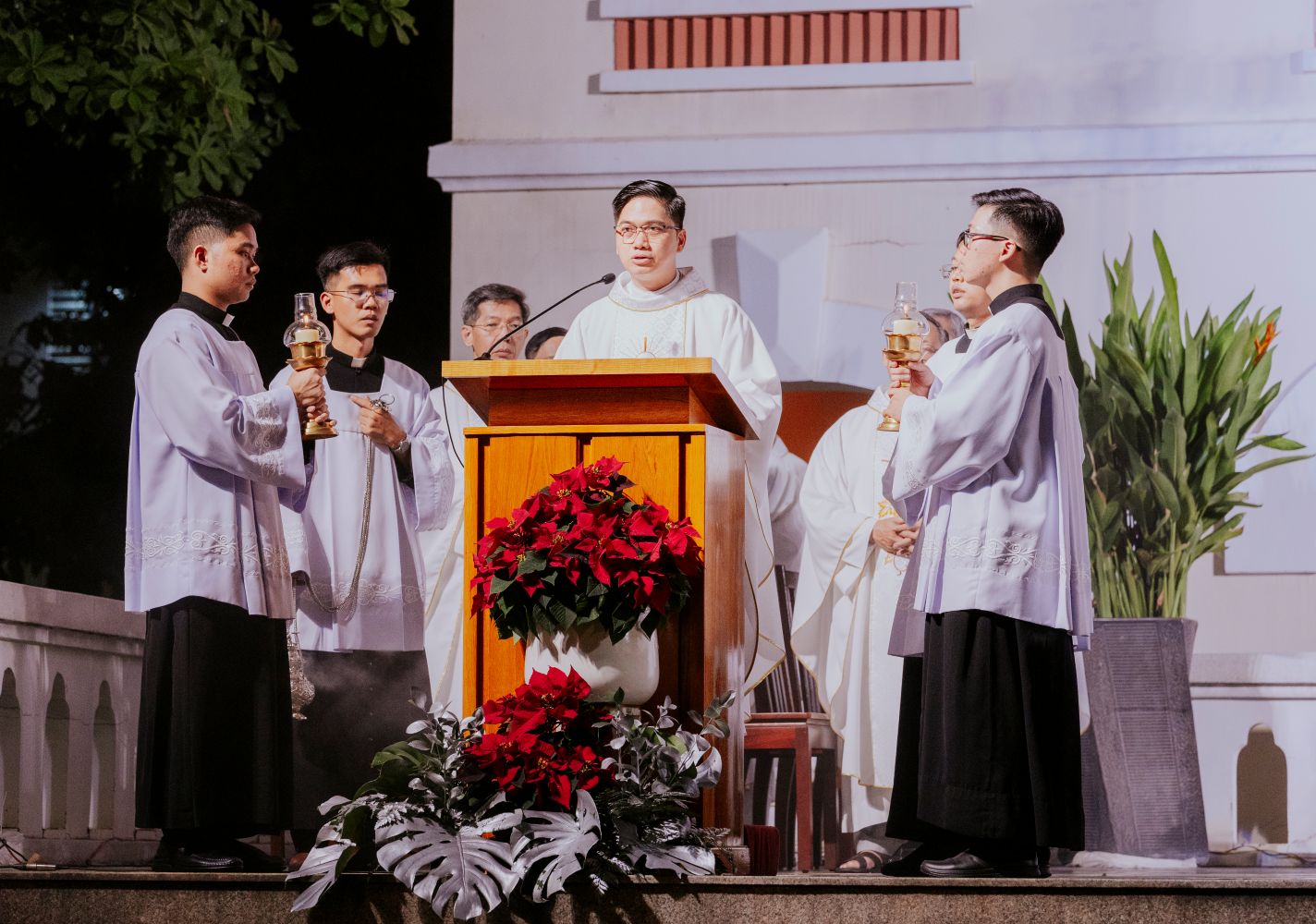 Đúng 20h30, Thánh lễ Vọng Giáng Sinh được cử hành cách long trọng.