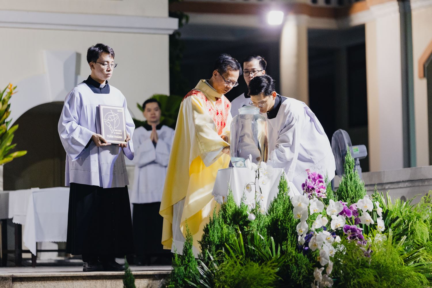 TGPSG -- Trong bầu khí linh thiêng tràn đầy hy vọng của Đêm Vọng Phục Sinh, vào lúc 20g ngày 04.04.2026, Đại Chủng Viện Thánh Giuse Sài Gòn đã long trọng cử hành Thánh lễ Vọng Phục Sinh, do linh mục Giuse Đỗ Xuân Vinh - Giám đốc Đại Chủng viện, chủ tế. Đồng tế với ngài có các linh mục trong Ban Đào tạo, cùng với sự tham dự đông đảo các tu sĩ và cộng đoàn tín hữu, ngồi chật kín khuôn viên.