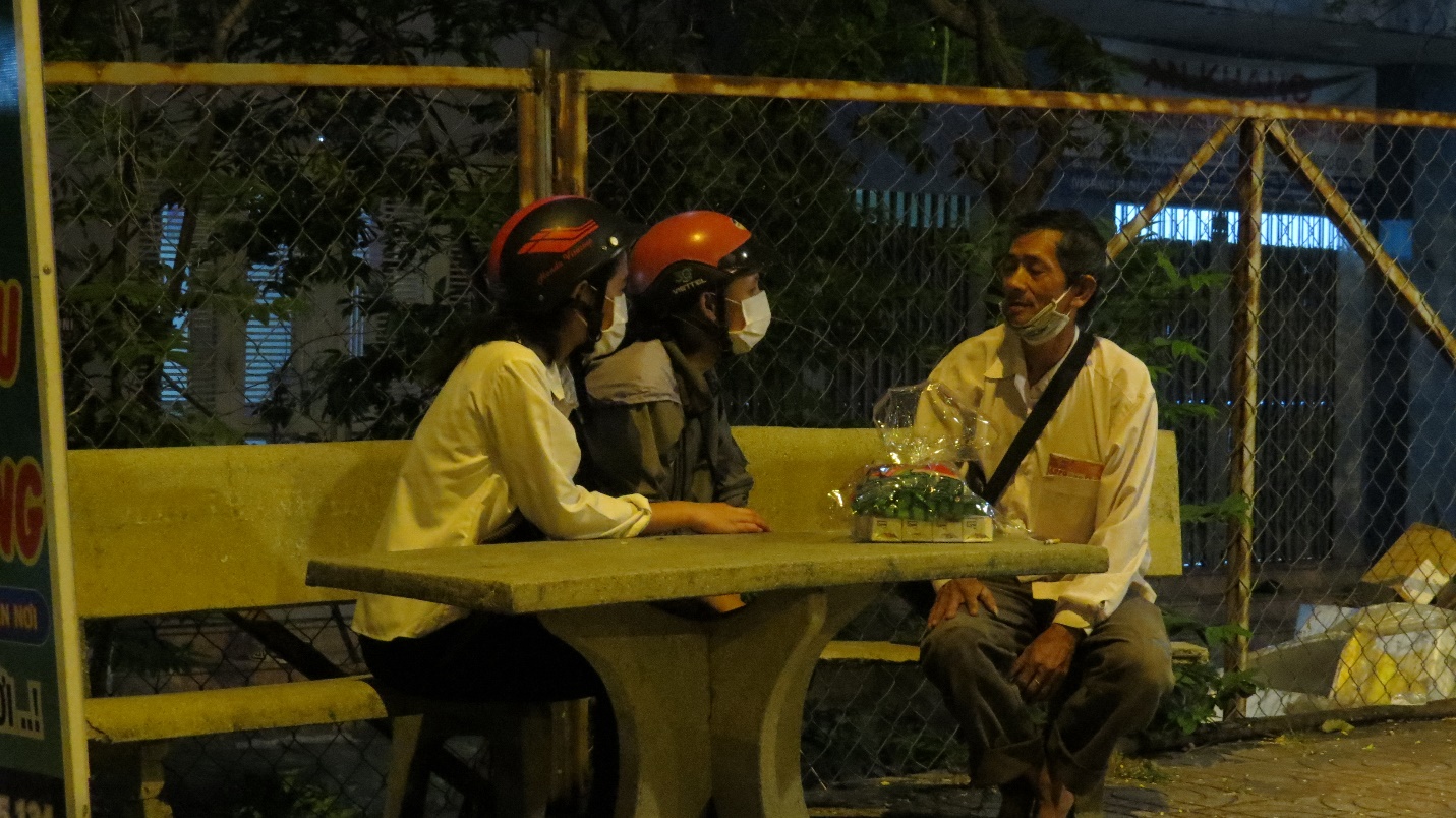 Lúc 20g30, trên đường Phạm Văn Đồng, chúng tôi bắt gặp hình ảnh một người đạp chiếc xe đạp cũ kĩ đang bán vé số. Khi được hỏi, chú chia sẻ rằng: “Gia đình chú gặp rất nhiều khó khăn, hai vợ chồng đều bị bệnh và phải bán vé số để có thể trang trải cho một đứa con trai đang học đại học năm 3. Mỗi ngày chú đều đi qua con đường này với hy vọng bán được một ít tờ vé số.”