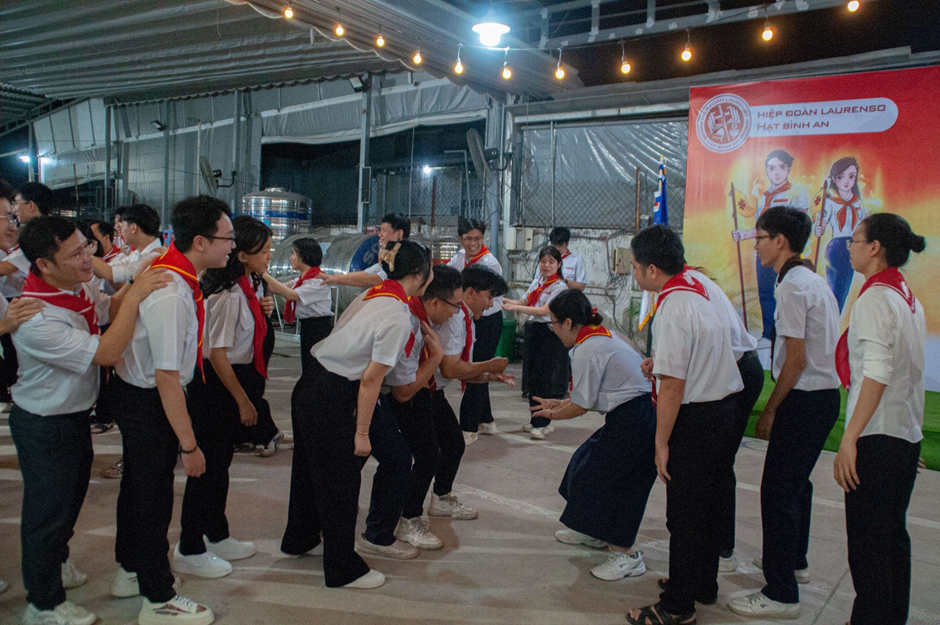 Sau đó, để gắn kết với nhau, mọi người cùng nhau sinh hoạt với các bài hát, cử điệu và trò chơi vui nhộn. Kế đến Lm Tuyên úy bộc bạch tâm tư và gửi đến mỗi bạn một cuốn sách kỹ năng sinh hoạt mà ngài đã biên soạn.