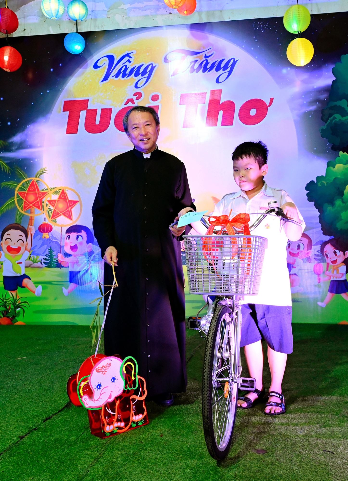 Hơn 19g, linh mục chánh xứ tuyên bố khai mạc lễ hội Trung Thu, trên tay ngài cầm chiếc lồng đèn nhỏ, ngài trò chuyện với các em, kêu mời các em cùng thưởng thức những món ăn.