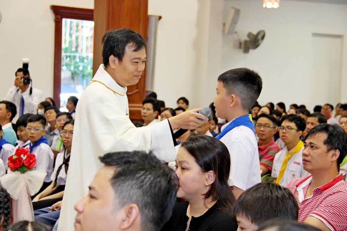 Tham dự có các tu sĩ nam nữ, ban quản giáo, giáo lý viên & huynh trưởng, phụ huynh các em thiếu nhi cùng gần 600 em thiếu nhi và cộng đoàn dân Chúa trong và ngoài giáo xứ.