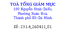Văn phòng Toà Tổng giám mục trân trọng thông báo: