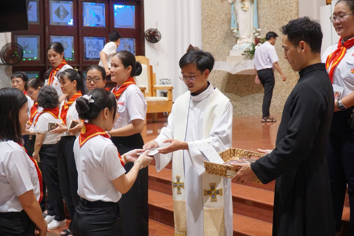 TGPSG -- Trong bầu khí náo nức chuẩn bị năm học mới của các em thiếu nhi, tối thứ năm vào lúc 19:30 ngày 22/08/2024, Linh mục (Lm) Đa minh Nguyễn Văn Minh, chánh xứ Tân Phước và Lm Phụ tá Anrê Dũng Lạc, đã tổ chức buổi tĩnh tâm cho các anh chị huynh trưởng trong giáo xứ để cầu nguyện xin Chúa trợ giúp cho những công việc mà các anh chị sắp làm trong năm học mới này.