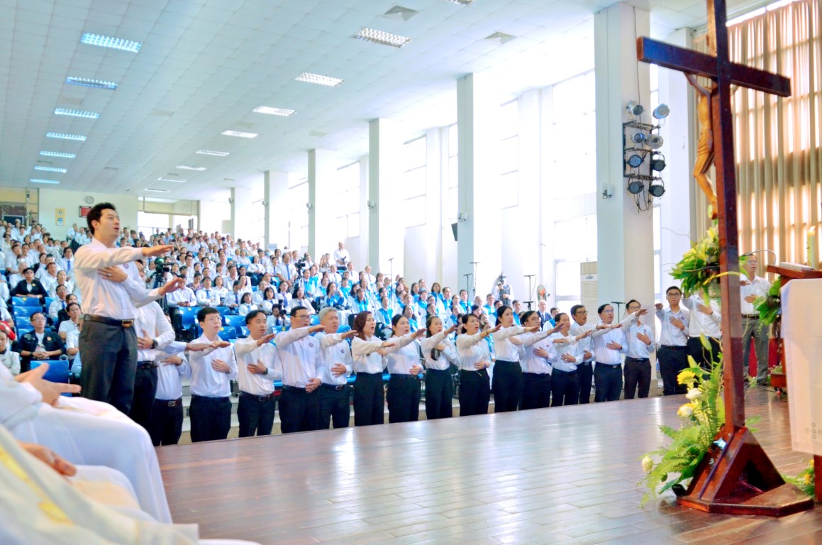 Kế tiếp, với bài hát múa “Nói bằng trái tim”, toàn thể cộng đoàn đã mừng bổn mạng “Đức Mẹ Thăm Viếng” của Ban MVTT TGPSG.