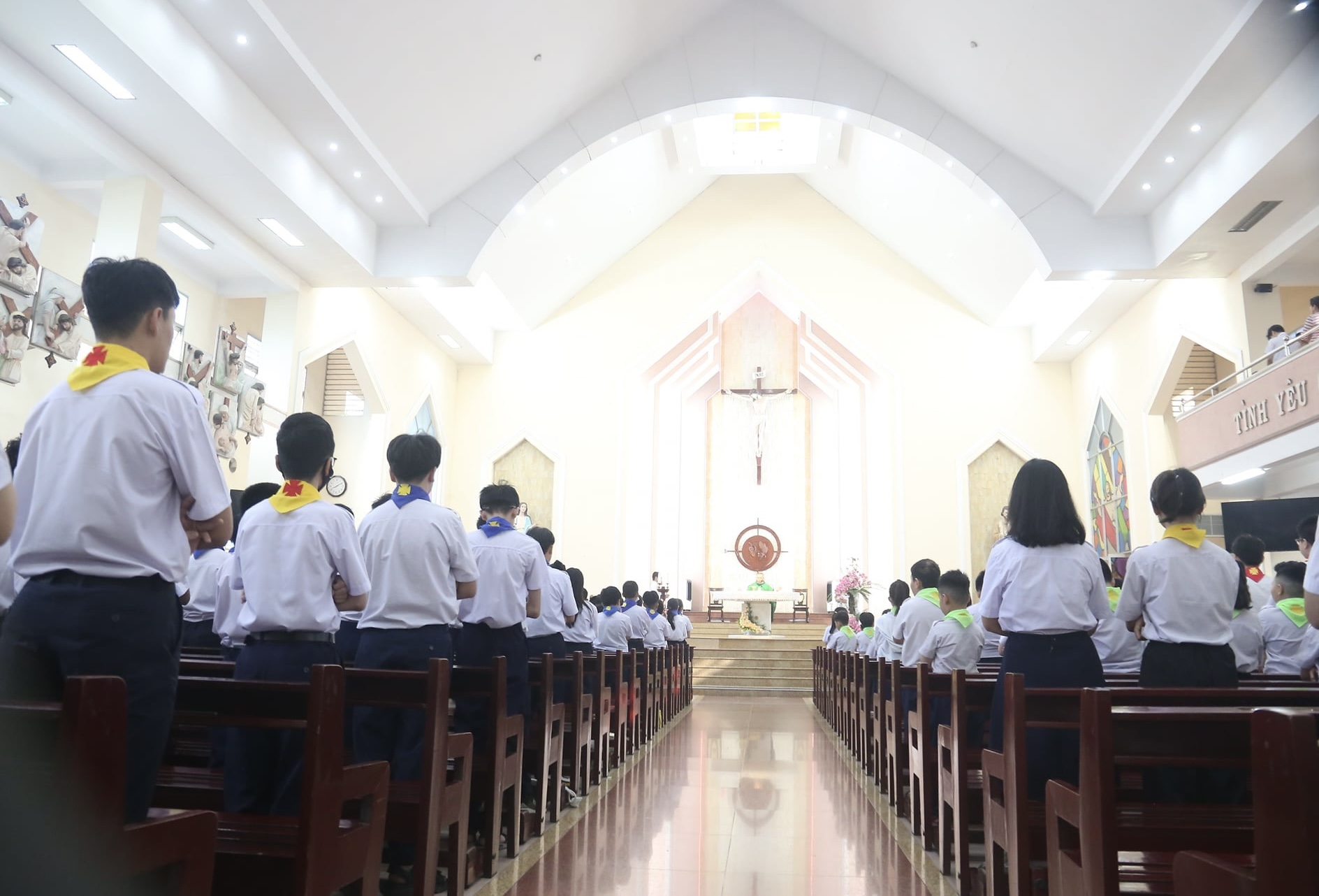 Tham dự Thánh lễ có đoàn thiếu nhi Thánh Thể, các anh chị Giáo lý viên và cộng đoàn dân Chúa.