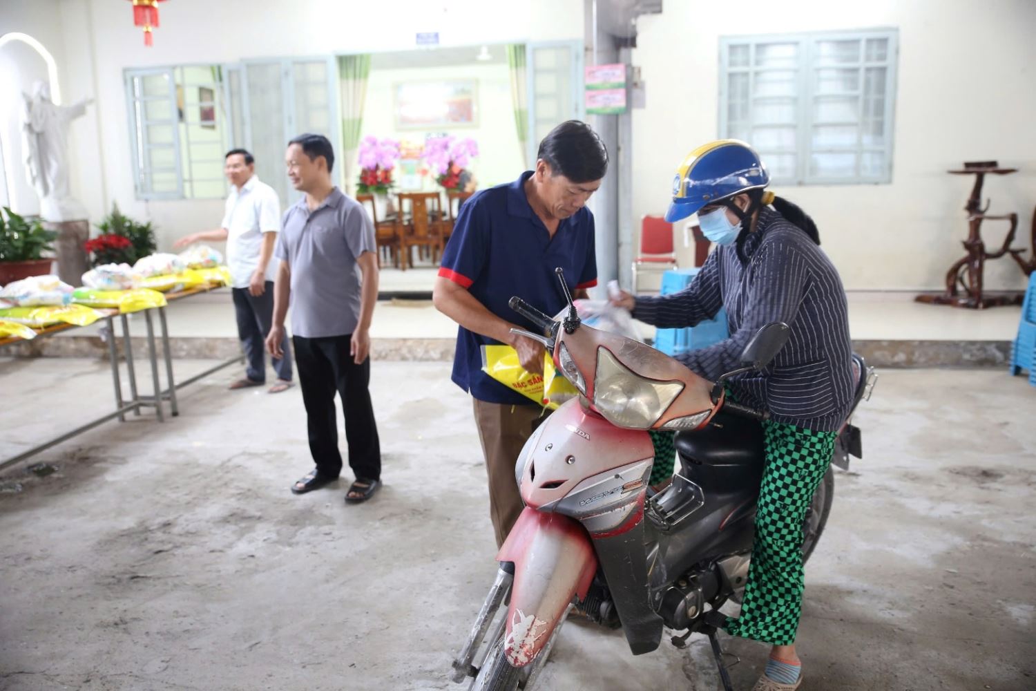Sau lời chia sẻ của Lm Chánh xứ, HĐMV đã phát quà cho mọi người trong trật tự và vui vẻ, mỗi phần quà gồm: 10kg gạo ngon ST 25, 1 kg bột ngọt, 1 kg đường cát, 1 chai dầu ăn, 1 chai nước mắm Nam Ngư, 1 kg hạt nêm.