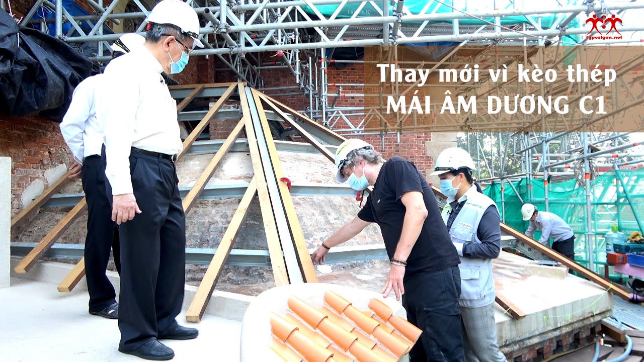 Ngày 14-12-2020, ông Mark Wilem giám đốc kỹ thuật báo cáo với linh mục Inhaxio Hồ Văn Xuân - Trưởng ban Trùng Tu Nhà thờ Chính tòa Đức Bà Sài Gòn - về việc lắp đặt hệ thống khung kèo thép cho mái âm dương.
