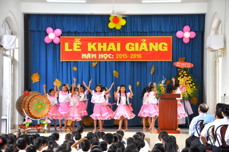 Mở đầu lễ khai giảng, các em học sinh đã múa bài “Đất nước mến thương” thật sôi động để chào đón quan khách. Đến dự lễ khai giảng năm học 2015-2016, có sự hiện diện của: