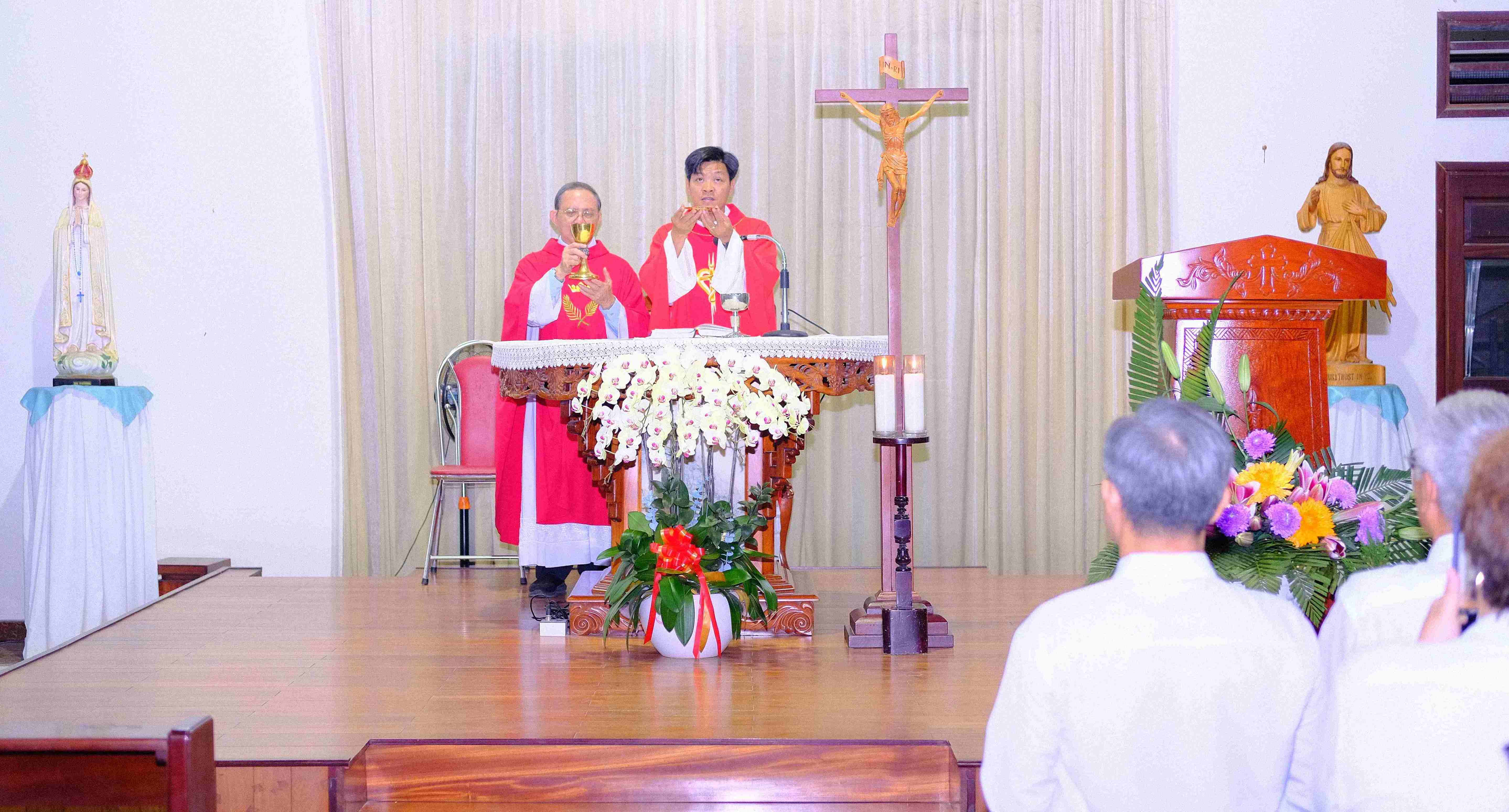 Cùng đồng tế với (Lm) Giuse Lê Quốc Hùng - đặc trách truyền thông hạt Tân Sơn Nhì - có Lm Giuse Vũ Hữu Hiền - Trưởng ban truyền thông Tổng Giáo phận Sài Gòn. Tham dự Thánh lễ có các thành viên của Truyền thông liên hạt Sơn - Môn.