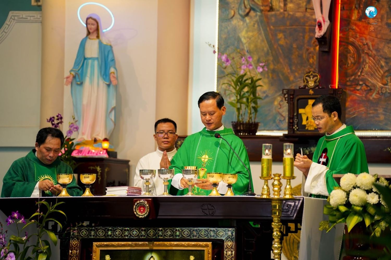 Cao điểm của chương trình là Thánh lễ do Cha Tôma Vũ Ngọc Tín, S.J. – Giám đốc Mạng lưới Cầu nguyện chủ tế, cùng với Cha Giuse Bùi Quang Minh, S.J. và Cha Phaolô Nguyễn Xuân Vương, CP (Dòng Thương khó Chúa Giêsu) đồng tế.