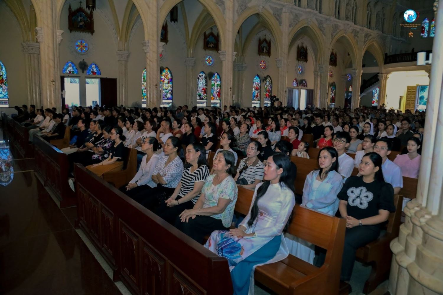 Nhà thờ Song Vĩnh, với vẻ đẹp nguy nga và diễm lệ, là một trong những công trình tiêu biểu của Giáo phận Bà Rịa. Kiến trúc Gothic tinh xảo, những tháp vươn cao và ánh sáng len qua khung kính màu khiến người bước vào có cảm giác như lạc giữa một “trời Âu thu nhỏ”. Chính tại ngôi thánh đường lộng lẫy này, cộng đoàn đã cùng nhau sống một buổi tối tràn đầy đức tin và hy vọng.