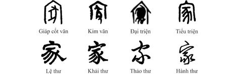 Gia trong từ gia đình là chữ 家, thuộc loại chữ hội ý, diễn tiến như sau: