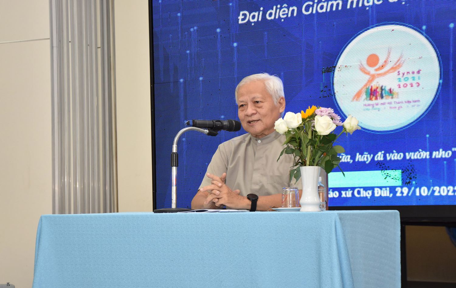 TGPSG - Lúc 8g thứ Bảy ngày 29-10-2022, tại nhà thờ giáo xứ Chợ Đũi, linh mục (Lm) Ernest Nguyễn Văn Hưởng, chánh xứ Chợ Đũi, đại diện Giám mục đặc trách Uỷ ban Giáo dân (UBGD) TGP Sài Gòn thuộc Hội đồng Giám mục Việt Nam (HĐGMVN), đã tổ chức hội thảo “Người giáo dân trong Hội Thánh Hiệp Hành”.