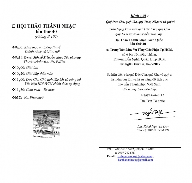 Uỷ ban Thánh Nhạc: Thư mời tham dự Hội thảo Thánh nhạc Toàn quốc lần thứ 40