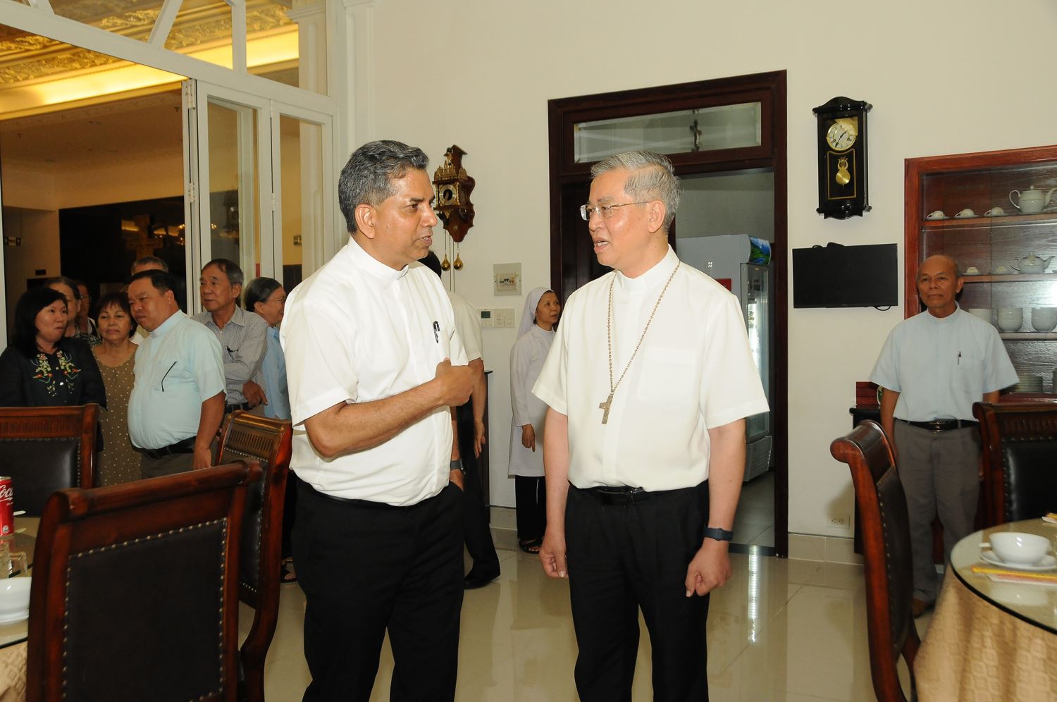Đáp lại, Đức ông trao tặng ĐGM Giuse Châu Ngọc Tri 3 tác phẩm của Hội Đồng Giáo hoàng về ĐTLT: Chứng nhân Kitô giáo trong thế giới đa tôn giáo, Xây dựng nền Văn hóa Từ bi (kỷ niệm 25 năm các Sứ điệp dửi Phật tử dịp đại lễ Vesak), và tập san “Pro Dialogo” bàn về những phản hồi của tín đồ tôn giáo khác về tính hiệp hành.