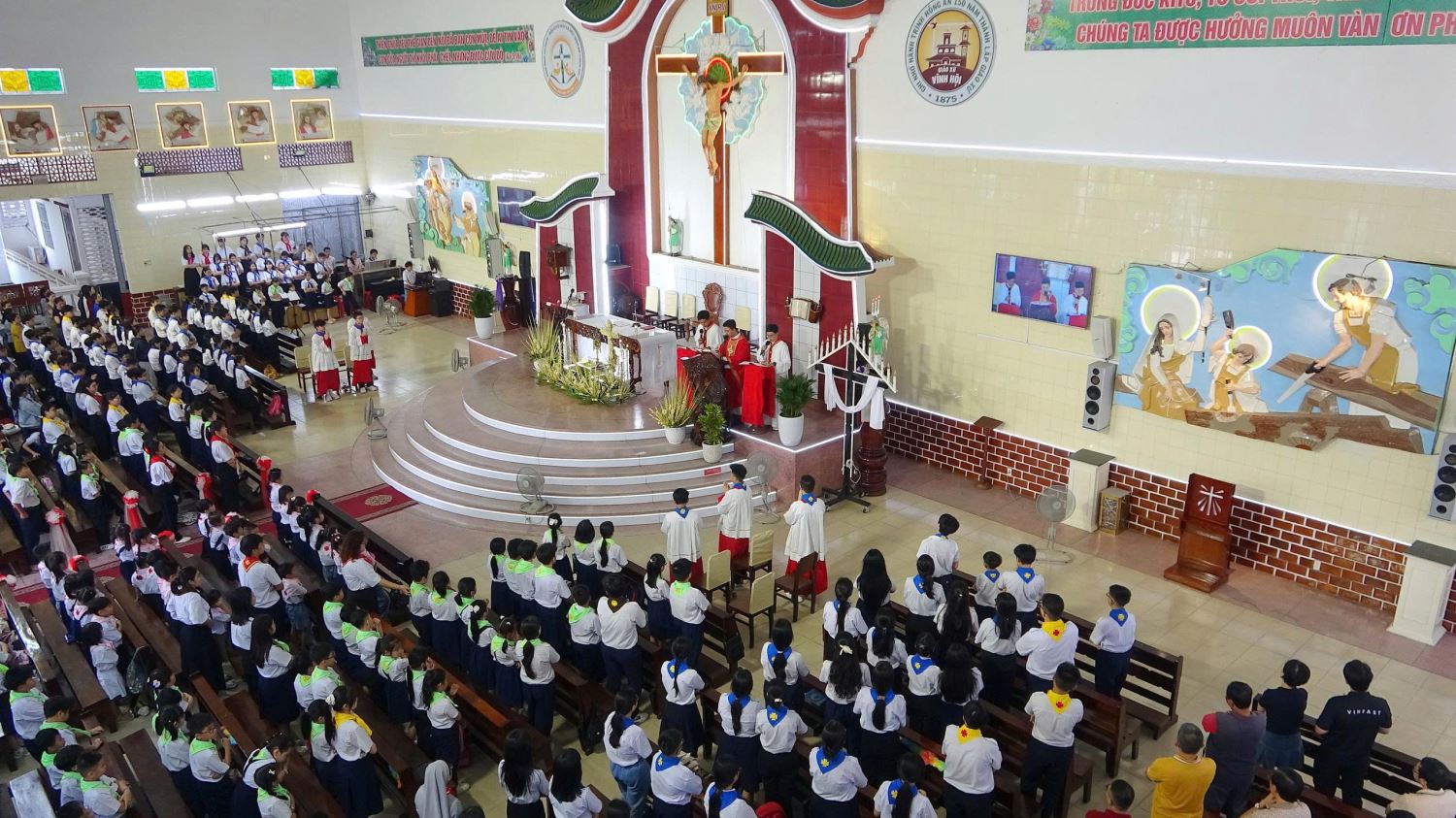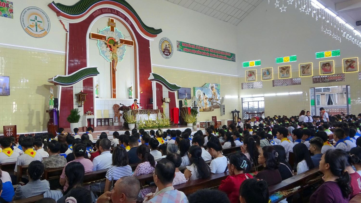TGPSG -- Vào lúc 8g15 sáng Chúa nhật, ngày 29.03.2026, tại giáo xứ Vĩnh Hội, xứ đoàn Thiếu Nhi Thánh Thể long trọng cử hành Thánh lễ Lá, khai mạc Tuần Thánh, do linh mục Phó xứ Anphongsô Nguyễn Hoàng Ngọc Anh chủ tế. Tham dự Thánh lễ có các tu sĩ, các anh chị huynh trưởng, giáo lý viên, các em thiếu nhi và phụ huynh.